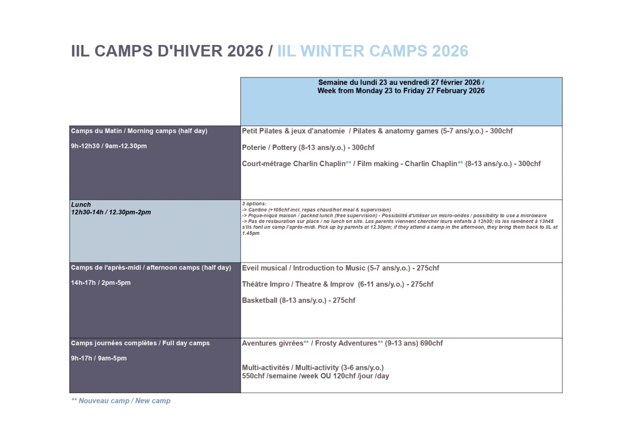 La fin d’année approche à grands pas et toute l’équipe IIL Camps se réjouit d’accueillir les enfants en 2026, pour une année qui s’annonce riche en activités stimulantes et amusantes !