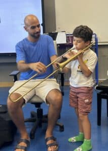 Tout au long de la semaine, Davide, tromboniste expérimenté et pédagogue passionné, guidera les enfants dans cette aventure sonore. Des musiciens invités viendront également présenter leurs instruments, offrant aux enfants une découverte concrète, interactive et ludique de différents univers musicaux.