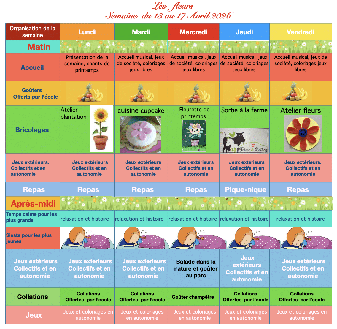N.B. : Le jeudi 16 avril, les enfants participeront à une sortie à la ferme pédagogique de Lathoy, à Saint-Julien-en-Genevois (France). Ils auront l’opportunité de visiter la ferme, d’en apprendre davantage sur les vaches charolaises et de découvrir les autres animaux présents.