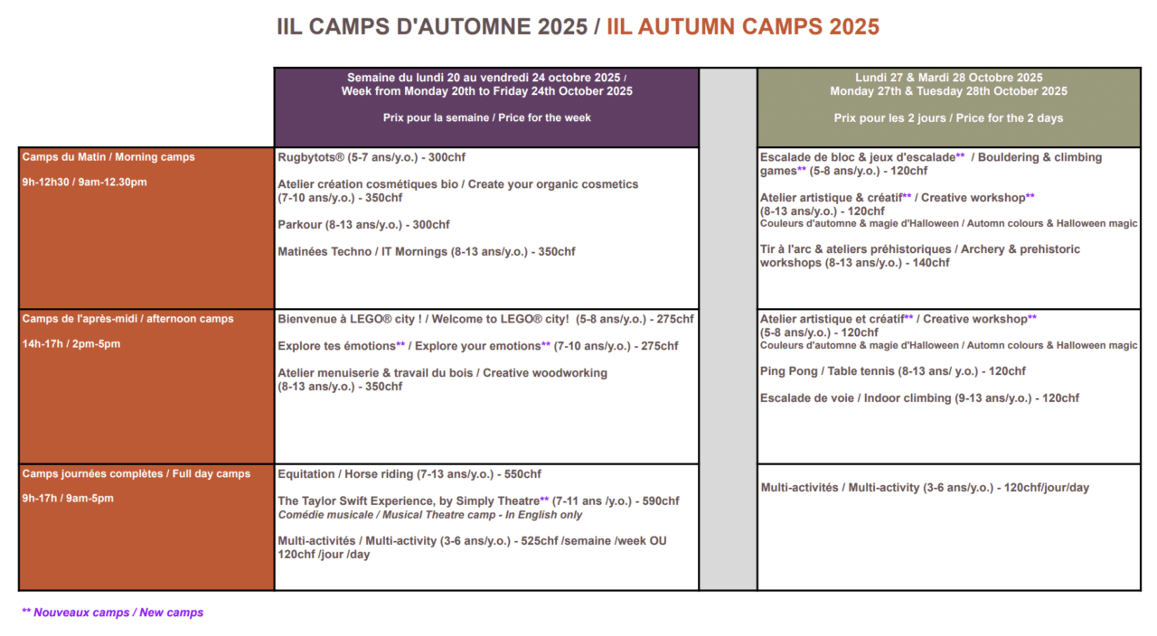 From October 20 to 28, IIL Camps is delighted to offer children and teenagers aged 3 to 13 an exciting variety of camps during this first holiday break.